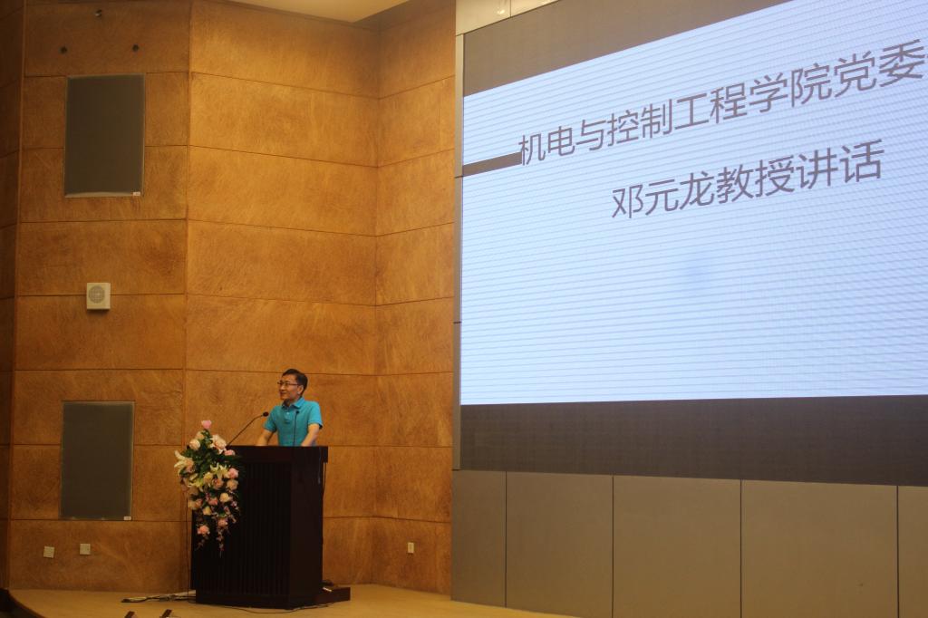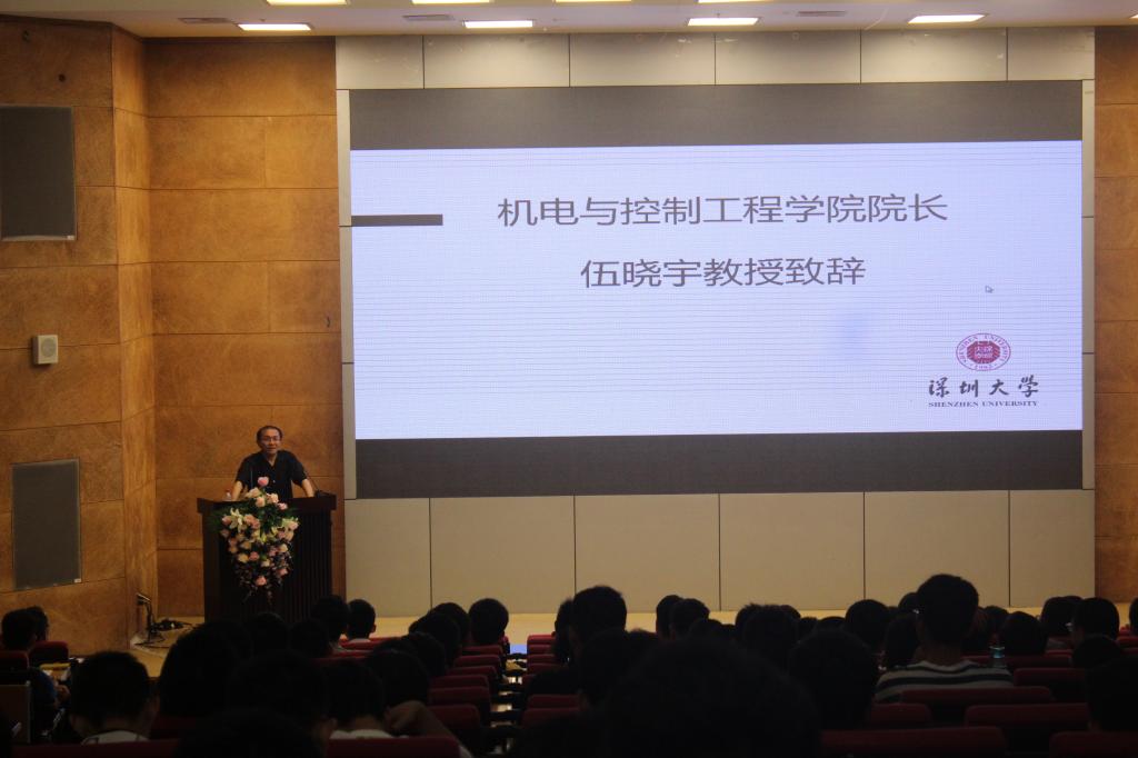 机电学院的选择表示祝贺与赞赏。伍院长还结合中美贸易战等热点问题,勉励新生们践行“自立、自律、自强”的校训精神和“工以新、匠以精、学以勤、知以行”的院训精神,希望大家能够志存高远、树立目标、努力奋斗,成为对国家有用的人才。