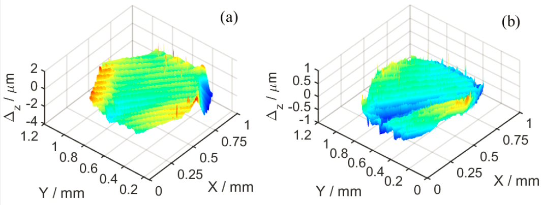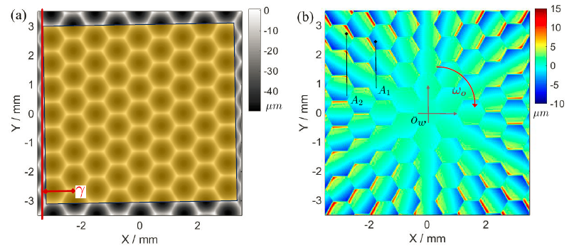 图5单个六边形透镜的面形误差( (a) STS和(b) CTS )