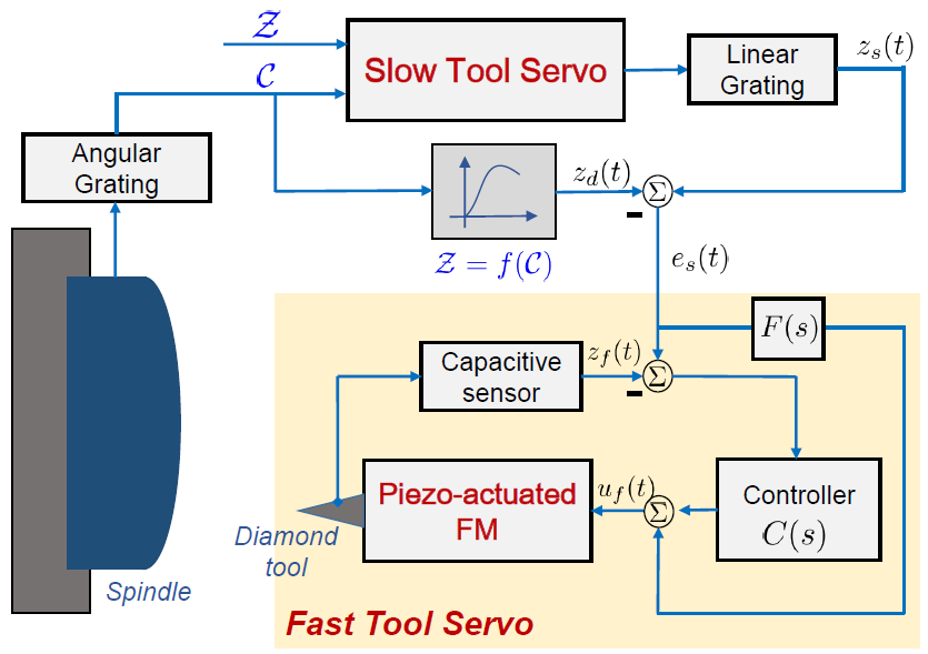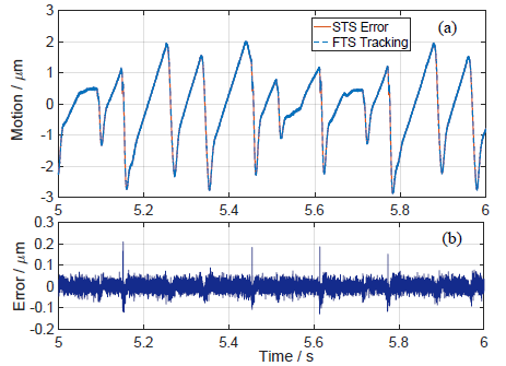 为了消除伺服轴动力学误差对加工精度的影响,研究团队提出了一种协同伺服切削新方法(cooperative tool servo,CTS),原理如图3所示。该方法创新性地使用具有高频响特性的快刀伺服(Fast tool servo,FTS)去实时跟踪补偿STS的伺服动力学误差。