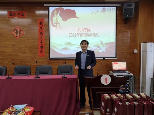 慰问活动现场气氛热烈,同学们每人领取了“新春旺旺大礼包”。学院党委副书记邓琳主持活动,党委书记邓元龙代表学院给大家拜年,副院长龚峰、副院长潘剑飞、机械系主任徐斌和支部书记马将、自动化系主任陈宏和支部书记王兴政、辅导员董利阳等老师分别致辞,关心同学们在校生活,并送来新春祝福;之后开展了有奖“猜灯谜”活动,同学们在传统游戏中感受到热闹的春节氛围;最后,还组织了“党建时政有奖知识竞赛”,同学们热情高涨,积极抢答。