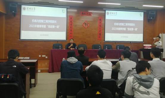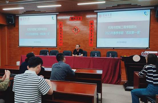 院长伍晓宇教授在致信楼S630讲授2021年春季学期思政第一课并召开实习就业动员大会,学院党委副书记邓琳老师主持,学院副院长娄燕教授、辅导员、学院大三和大四学生代表等120多人参加。