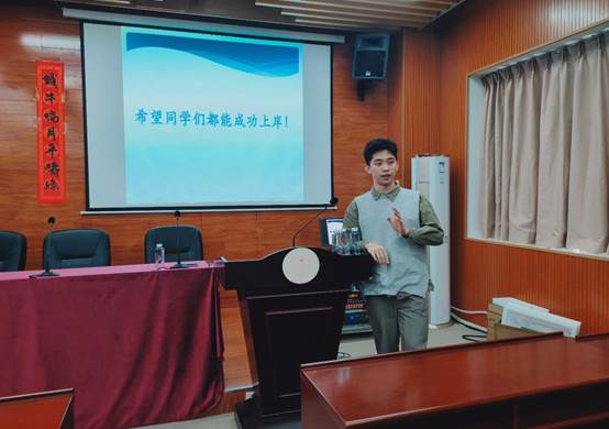 最后一位分享的是朱文轩同学,他给大家对考研进行了分阶段讲解。在准备前期,建议大家先开始进行一些公共课的复习,并搜集信息决定想要考取的院校和专业,正所谓“考得好不如报得好”,好的选择是成功的一半;在中期阶段,开展各学科的全面复习,并进行科学规划;而到了后期,更要耐得住寂寞,坚决杜绝身边的诱惑,坚持到最后。最后他告诫大家,既然决定了考研,就要坚持到底,只要坚持到最后,基本都可以上岸。