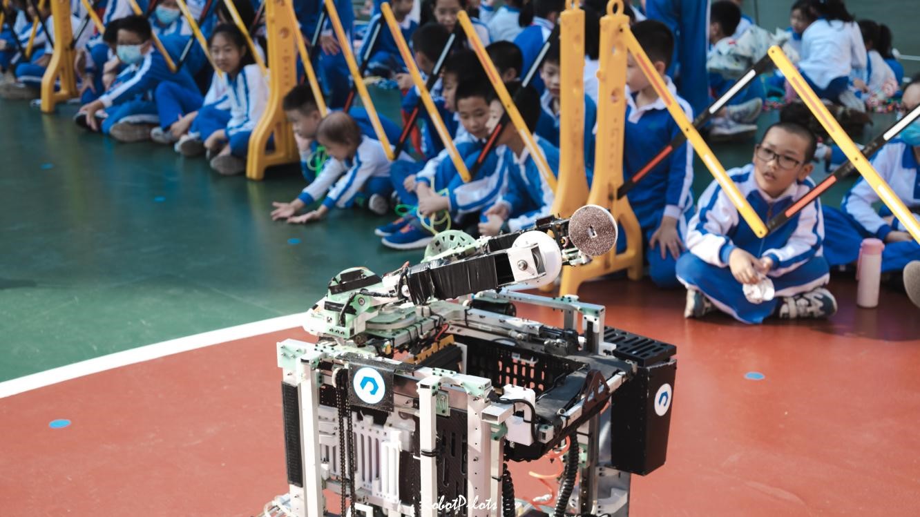 RobotPilots机器人实验室团队自主研发的步兵机器人、工程机器人和无人机让学生们眼前一亮,学生们爱不释手,纷纷排队体验用遥控器操作机器人在场内飞奔。连校长也童心大发,加入了机器人操作体验的队伍,和学生们一起感受科技的魅力。