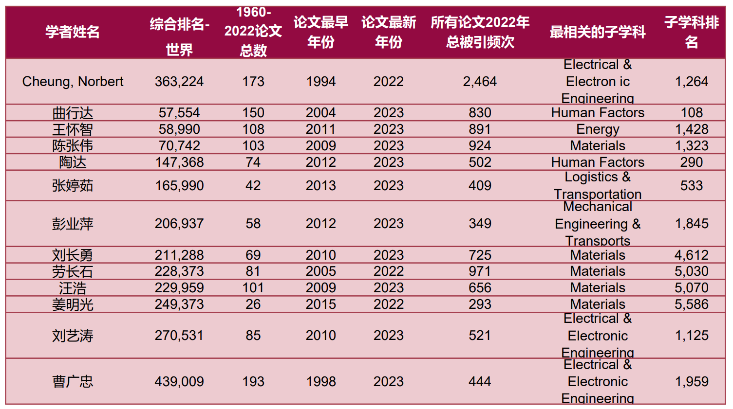 共12名学者入选“2022年度科学影响力排行榜”。