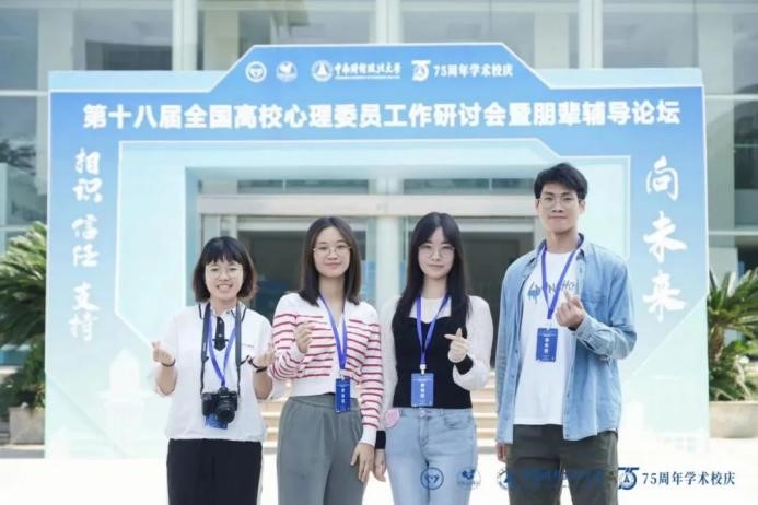 中国心理学会危机干预工作委员会于2023年11月1日至3日在中南财经政法大学召开第十八届全国高校心理委员工作研讨会暨朋辈辅导论坛。我校心理中心蔡洁钒老师带领心理委员陈嘉伟、刘玺鲲、陈玮烨出席。