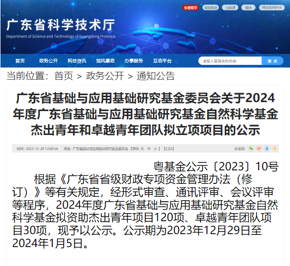 近日,2024年度广东省基础与应用基础研究基金自然科学基金杰出青年和卓越青年团队拟立项项目公示,吃瓜