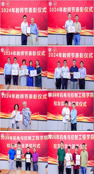 随后,学院举行了2024年教师节表彰仪式和校友奖学金颁奖仪式,荣休教师和杰出院友代表为获奖师生颁发了荣誉证书,以表彰他们为学院做出的贡献。