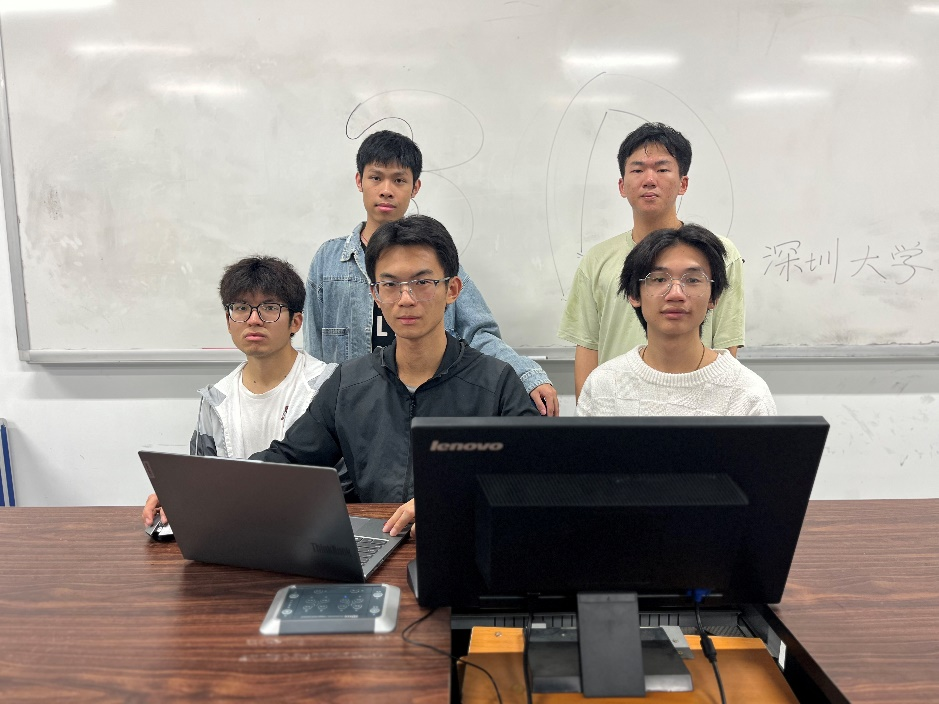 图2 获奖团队合影(庞竣豪、刘振楠、朱玄豫、孙家俊和黄泓霖)