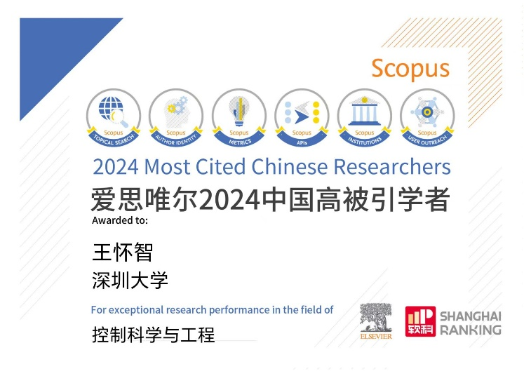 王怀智,副教授,于2015年在华南理工大学获得博士学位,为深圳市孔雀计划海外人才。主要研究方向为机器人与智能网联系统,包括自动控制、多传感融合、电力信息融合系统。共发表论文112篇,其中含55篇SCI论文和5篇ESI高被引论文。近五年主持项目7项,其中国自然基金2项(青年+面上),省部级2项,累计到账经费493万。已授权国家级发明专利4项。2022、2023、2024年连续三年入选全球前2%顶尖科学家“年度科学影响力”榜单。入选2024爱斯维尔中国高被引学者榜单。中国发明协会创新奖创业奖一等奖获得者(排名第3)。谷歌学术被引5900余次,H 指数为32。担任《Protection and Control of Modern Power Systems》和《Information Processing in Agriculture》大类一区TOP SCI编委(Associate Editor),《电力系统保护与控制》等杂志青年编委。获评“吃瓜