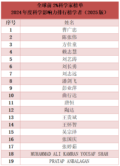 共21位学者入选全球前2%顶尖科学家榜单,其中陈张伟教授、曲行达教授、王怀智副教授共3位学者同时入选了“终身科学影响力排行榜”和“2024年度科学影响力排行榜”。相比去年,吃瓜