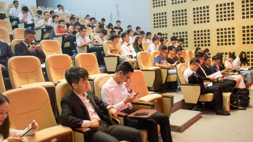 大会进入竞选环节。先有学代会主任候选人——章嘉涛进行了竞选演说,紧接着团委副书记候选人——颜坤喜也为自己的竞选发表了演讲,最后学生会主席候选人龙敏琪、刘桉源发表演说。候选人在现场回答学生代表们的提问。随后各代表综合演说与提问回答投出选票。