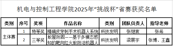 在被誉为当代大学生学术科技“奥林匹克”的“挑战杯”广东大学生课外学术科技作品竞赛终审决赛中,机电学子精心准备、奋勇争先,最终,吃瓜 参赛作品--精确皮穿刺手术机器人系统,在众多优秀项目中脱颖而出,一举夺得主体赛特等奖!蚁屋防固--基于多模态感知的靶向红火蚁防治机器人项目则斩获赛事三等奖。
