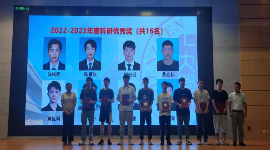 随后,龚峰教授对2022-2023年度获得科研优秀奖的同学给予了肯定和支持,由吴宗泽教授、邓琳老师、马将教授以及学位点负责人张国庆老师和陈张伟老师分别给获奖的同学进行颁奖。