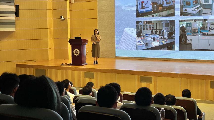 娄燕教授为同学们介绍了学院人才培养情况和学习注意事项。经过娄教授对学院师资队伍、专业设置、课程体系、实验设备、成绩成果的介绍,同学们对学院有了更全面的了解,对个人的发展路径也有了更清晰的认识。