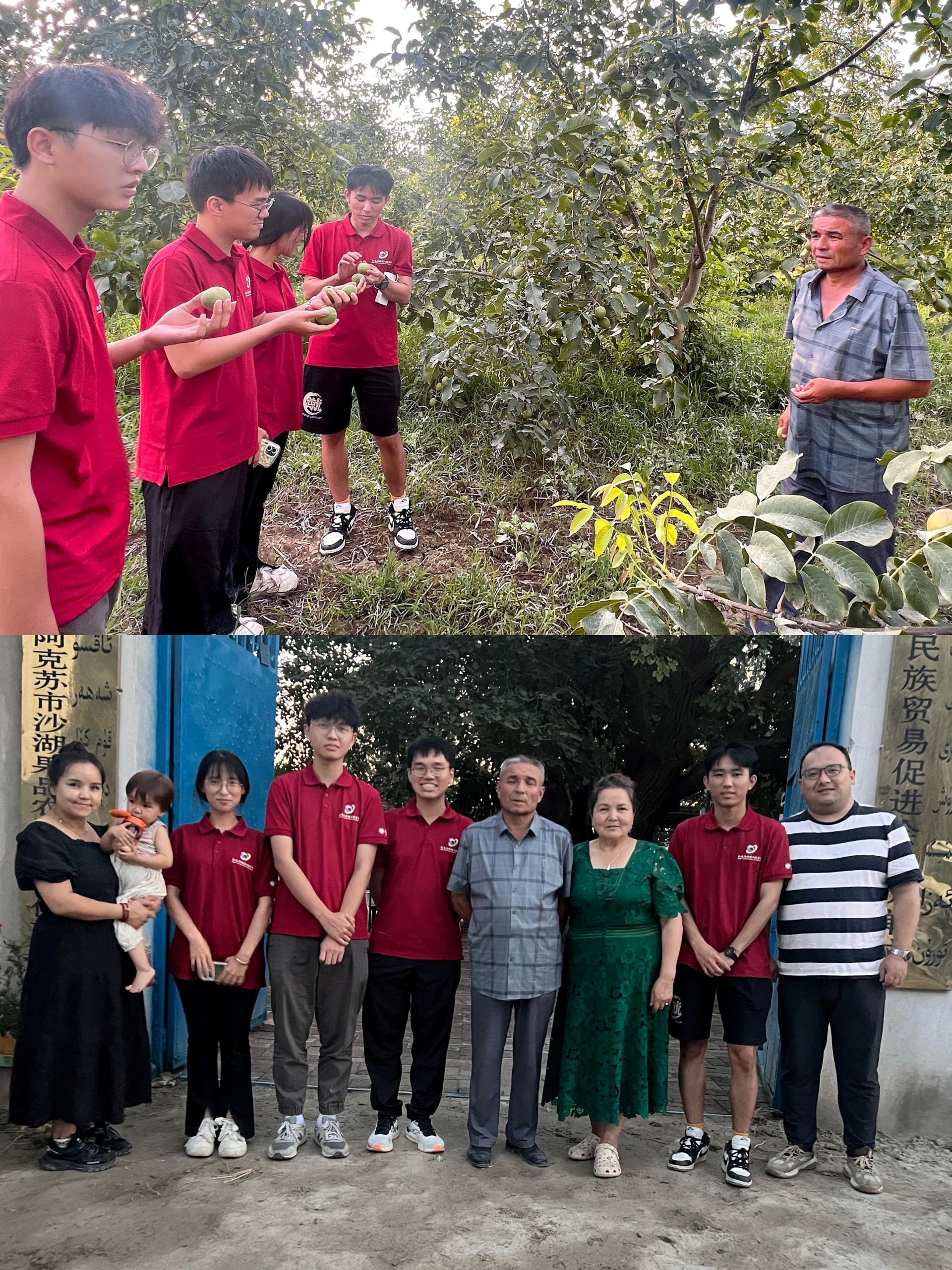 实践最后一站,师生一行抵达阿克苏市库木巴什乡并拜访了2014届院友依力哈木·艾尔肯一家。院友父亲艾尔肯先生热情招待,结合自身经历深入讲述该乡在党的领导下所发生的翻天覆地的变化。双方相互问候、亲切交流,洋溢着幸福与温馨。