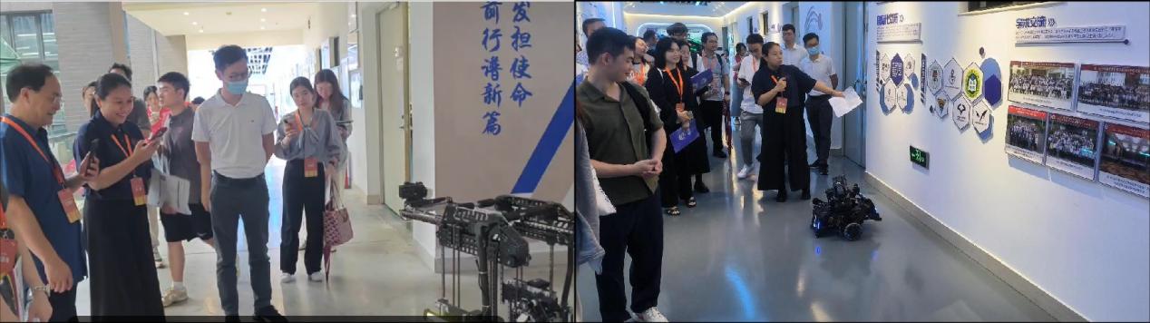 下午三时半,学院辅导员廖丽丽、杨忠、林志彬及党群服务中心学生骨干将企业嘉宾引领至吃瓜 。志愿者将学院精心制作的“智造魔方”纪念品和毕业生信息指南呈送给企业嘉宾。在机器人的带领下,参访队伍缓步走进“智造长廊”,驻足观看学院宣传短片及 RobotPilots 机器人战队比赛视频。RobotPilots 译为“机器人领航者”,每年在全国大学生机器人比赛中获得不俗战绩,旨在通过推广和普及机器人文化和工程师精神,锻炼学生实践能力,培养满足企业和社会发展需求的新时代工程人才。