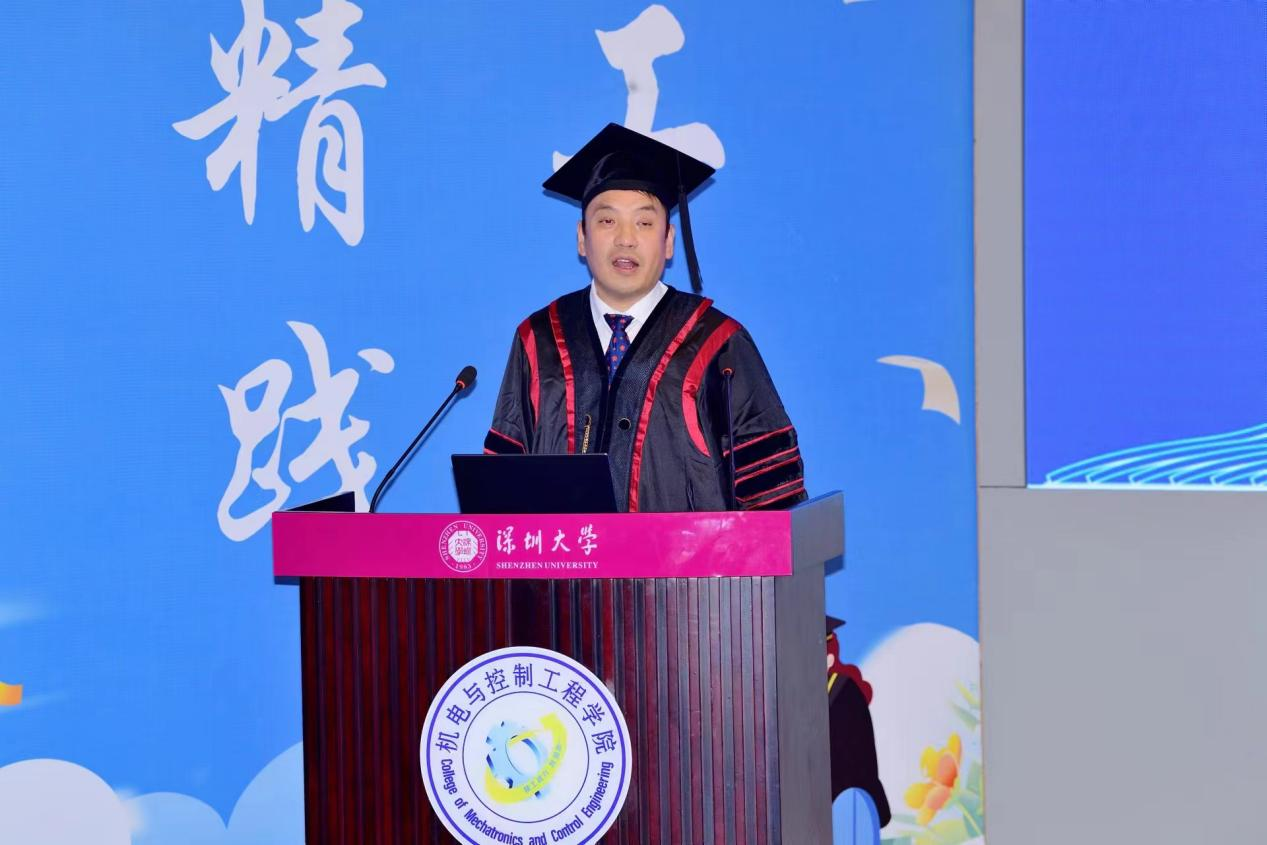 院长吴宗泽教授发表了深情寄语。他回顾了同学们在校期间的学习与生活点滴,送上“新时代”、“新起点”、“新未来”三个关键词,鼓励毕业生们紧跟时代的步伐,积极融入智能制造的浪潮中,不断提高自己的技术水平和创新能力,做时代的先锋;深入产业一线,坚持不懈地持续学习、大胆探索,肩负起“制造强国、智能兴邦”的重任;发扬好“自立、自律、自强”的校训三自精神,身体力行“精工践行、至臻如一”的院训工匠精神,不忘初心,砥砺前行,以昂扬的姿态和卓越的成就,书写属于自己的灿烂篇章。