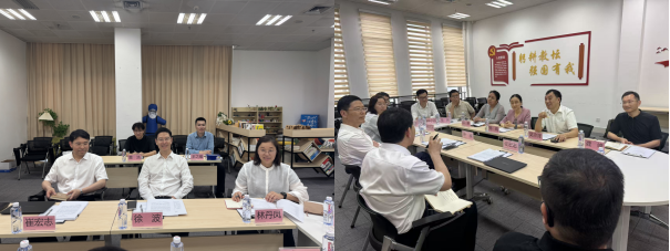考察调研,实地走访学院党建、科研阵地,并与学院领导班子座谈交流。科学技术发展研究院院长崔宏志、后勤保障部党委书记林丹凤等陪同调研。